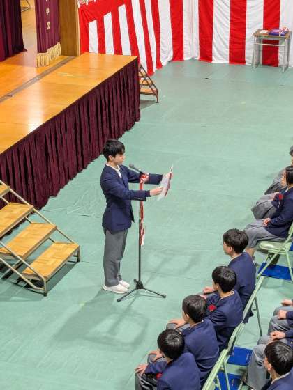 委員会活動や行事では、いつも先頭に立ち、僕たちを引っ張ってくれました。先輩方のおかげで、とても充実した中学校生活を送ることができています。本当にありがとうございました。