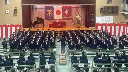 式の締めくくりに、卒業生全員が「旅立ちの日に」「正解」を心を込めて合唱しました。響き渡る歌声には、仲間との絆、感謝の気持ち、そして未来への決意が込められていました。