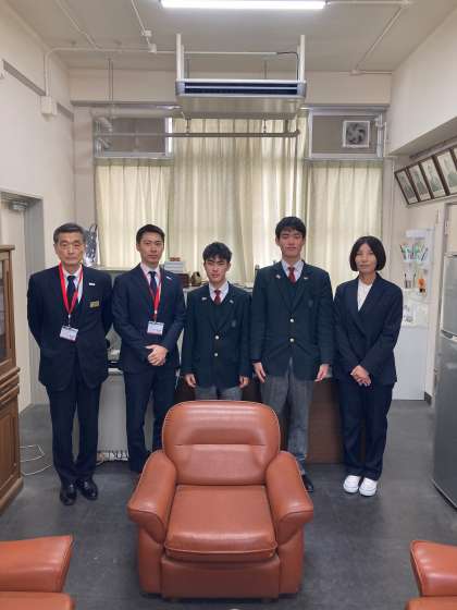 進学先である興国高校の先生方と記念写真の撮影。
