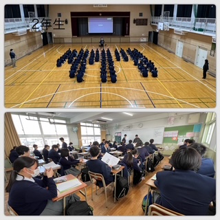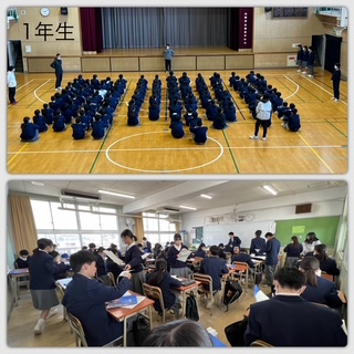 学年集会では、この1年間を振り返り、自分たちの成長や頑張りを確認するとともに、次の学年に向けての心構えや目標についてのお話がありました。生徒たちは真剣な表情で先生の言葉に耳を傾け、それぞれが次への一歩を踏み出そうとする姿が印象的でした。
