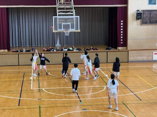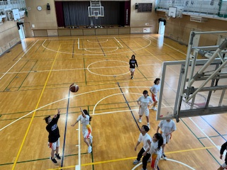 女子バスケットボール部が、顧問の先生も交えて紅白戦を行いながら、動きの確認をしていました。