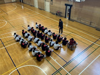 号令にあわせて歩いたり、向きを変えたりと、仲間と息を合わせながら行動することで、協調性や集中力を養う活動となりました。生徒たちは真剣な表情で取り組んでいました。