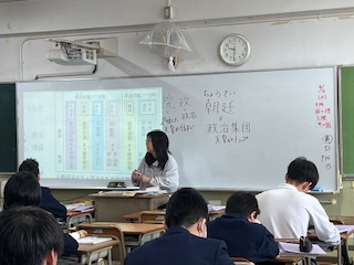 今日の授業☆2年生社会科4月16日 公開日 2025/04/16 更新日 2025/04/16 お知らせ 「院政と武士」について学習しました。 保元の乱から平治の乱へと続く歴史の中で、支配の中心が公家から武士へと移っていく時代の変化について学びました。生徒たちは、政治の流れや武士の台頭に関心を持ちながら学習に取り組んでいました。 いいね(0)