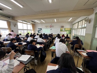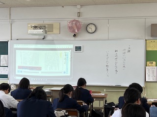 『龍』を学習しました。生徒たちは、登場人物の心情の変化や「龍」の象徴的な意味を読み取りながら、自分の経験と重ね合わせたり、感じたことを言葉で表現したりしていました。