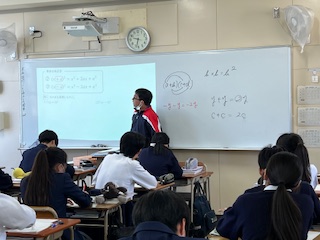 今日の授業☆3年生数学科4月21日 公開日 2025/04/21 更新日 2025/04/21 お知らせ 多項式の計算について学習しました。 乗法の公式を確認した後、式の展開の理解を深めるために、たくさんの練習問題に取り組みました。繰り返しの演習を通して、計算力を確実に身につけています。 いいね(0)