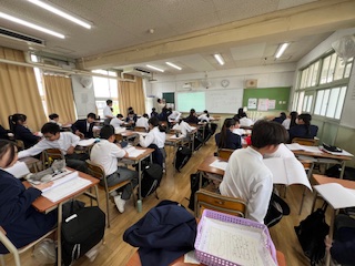 まずは各自で真剣に問題に取り組み、その後は周囲の仲間と教え合いながら、互いに学びを深めていました。計算の工夫や考え方を共有することで、理解が一層深まる時間となりました。