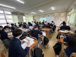 今日の授業☆3年生国語科4月25日 公開日 2025/04/25 更新日 2025/04/25 お知らせ 井上ひさしの作品「握手」を学習しました。 文章の中に込められた言葉に注目しながら、登場人物や作者の思いを読み取り、自分自身の考えをもつことを目指して授業に取り組みました。言葉の奥にある感情や背景を感じ取ろうとする、生徒たちの真剣な姿が印象的でした。 いいね(0)