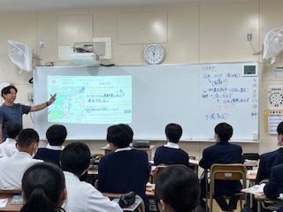 日清戦争後、清国がどのような状況に置かれたのか、当時の社会情勢をもとに考える授業を行いました。歴史の流れを追うだけでなく、社会の動きや国の変化に目を向けることで、より深く理解を深める学びとなりました。