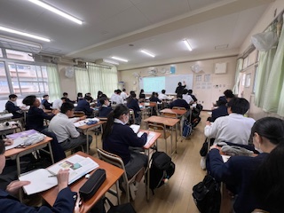 今日の授業☆3年生国語科4月28日 公開日 2025/04/28 更新日 2025/04/28 お知らせ 井上ひさしの作品「握手」を学習しました。 「誰が」「誰に」「どこで」「どんな目的で」など、文中の言葉の意味や関係を丁寧に読み解きながら、物語の背景や登場人物の心情に迫りました いいね(0)