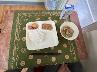 【鶏肉とじゃがいもの煮もの 紅鮭そぼろ あつあげのしょうゆだれがけ 米飯 牛乳】