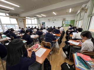 教科書の英文を一文ずつ意味を考えながら、全員でスピーキングに取り組みました。