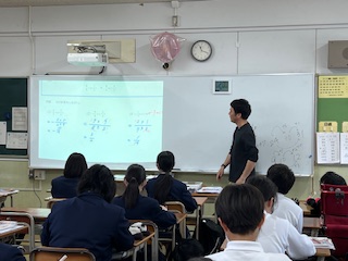 今日の授業☆1年生数学科5月2日 公開日 2025/05/02 更新日 2025/05/02 お知らせ 分数の除法について学習しました。 「なぜそうなるのか?」という疑問にも向き合いながら、生徒たちはしくみをしっかり理解していました。 いいね(0)