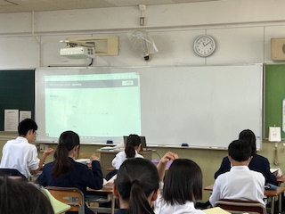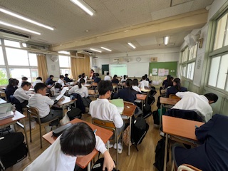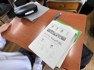 自己紹介に関するリスニングテストに取り組みました。生徒たちは、これまでの学習の成果を発揮しながら、集中して取り組んでいました。