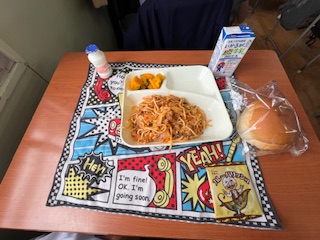 【ミートスパゲッティ 焼きかぼちゃ 発酵乳 カレーフィッシュ ミニコッペパン 牛乳】