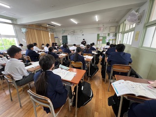 家庭科の授業で、衣服の持つ役割について学習しました。私たちの生活に欠かせない衣服には、身体を守るだけでなく、気候に適応したり、個性を表したりするなど、さまざまな役割があることを知りました。生徒たちは身近な衣服を題材に、日常生活との関わりについて考えを深めていました。