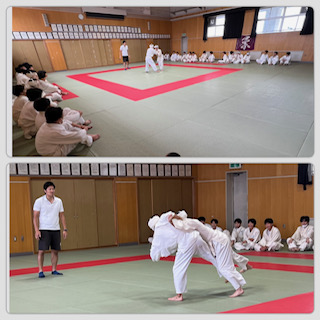 男子は格技室で柔道の学級対抗戦に取り組み、礼法や技の習得だけでなく、勝敗を越えたフェアプレーの精神も大切にしていました。