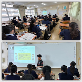 一方、女子は教室で感染症について学習し、ウイルスや細菌の違い、予防の方法、そして正しい知識を持つことの重要性について理解を深めました。