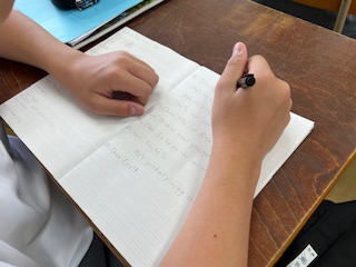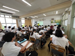 今日の授業☆1年生英語科6月12日 公開日 2025/06/12 更新日 2025/06/12 お知らせ これまでに学んできた語彙や表現を活用しながら、「身近な人の紹介」をテーマに英作文に取り組みました。 生徒たちは、家族や友人、先生など、自分にとって大切な人の性格や趣味、日常の様子などを、英文で丁寧に表現することに挑戦しました。 いいね(0)