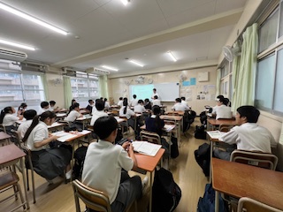 今日の授業☆3年生英語科6月26日 公開日 2025/06/26 更新日 2025/06/26 お知らせ 「動詞+人+to+動詞の原形」の文型について学習しました。 写真は、教科書の会話文を使ってペアで読み合いながら、文の形や使い方を確認している様子です。 実際の会話の中でどのように使われているのかを意識しながら、楽しそうに取り組む姿が見られました。 いいね(0)