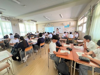 生徒たちはこの問いを出発点に、現代社会の矛盾や、平和の尊さ・もろさについて考えを深めました。