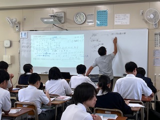 今日の授業☆3年生数学科7月1日 公開日 2025/07/01 更新日 2025/07/01 お知らせ これまでに学習した「平方根」の知識を使って、文章問題に取り組みました。 数の意味をしっかりと理解し、式に表す力や、問題の状況を読み取る力が求められる内容に、真剣に挑戦する姿が見られました。 難しさの中にも、解けたときの達成感を味わえる学習となりました。 いいね(0)