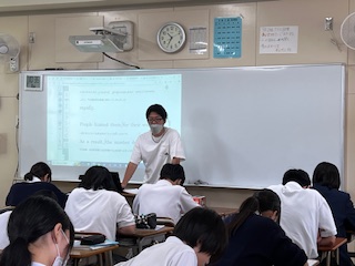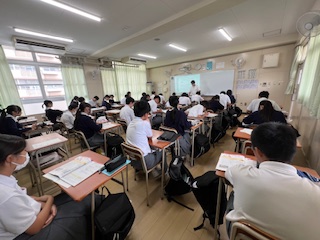 今日の授業☆3年生英語科7月2日 公開日 2025/07/02 更新日 2025/07/02 お知らせ 「let」や「help」を使った構文(let/help+人+動詞の原形)について学習しました。 意味や使い方のポイントを確認した後、教科書の英文を使ってスピーキング練習に取り組みました。写真は、自然な表現の使い方を身につけようとしている様子です。 いいね(0)