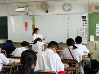 今日の授業☆1年生国語科7月3日 公開日 2025/07/03 更新日 2025/07/03 お知らせ 修飾語の学習に取り組みました。 文章の中から修飾語を見つけ出し、「連体修飾語(名詞を修飾する言葉)」と「連用修飾語(動詞や形容詞などを修飾する言葉)」に区別することを目標に授業を進めました。 言葉の働きに注目しながら、文の構造への理解を深めました。 いいね(0)