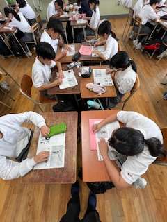 今日の授業☆1年生保健体育科7月4日 公開日 2025/07/04 更新日 2025/07/04 お知らせ ストリートアートで知られるバンクシーの絵を題材に、作品に込められたメッセージや表現の工夫について考えました。 単に「見る」だけでなく、「なぜこの表現なのか」「自分はどう感じたか」を共有し合いながら、芸術を読み解く視点を広げていきました。 いいね(0)