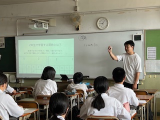 今日の授業☆2年生数学科7月4日 公開日 2025/07/04 更新日 2025/07/04 お知らせ 関数について学習しました。 授業ではまず、「関数とは何か」について確認し、日常生活の中にある関数の例を使ってわかりやすく説明を受けました。 身近な事例を通して、「変化する2つの数量の関係」に興味をもって学習に取り組んでいました。 いいね(0)