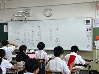 今日の授業☆1年生国語科7月8日 公開日 2025/07/08 更新日 2025/07/08 お知らせ 「文節」についての学習を進めました。 今日のテーマは、「文節の並立と補助の関係を理解する」です。 いくつかの例文を使って、文節同士の関係性について考えたあと、問題プリントに取り組み、学んだことを振り返りました。 言葉のつながりを意識して読み取る力が、文章理解や表現力の土台となっていきます。 いいね(0)