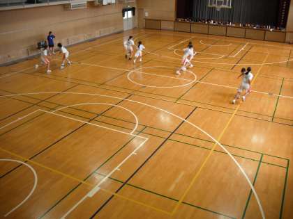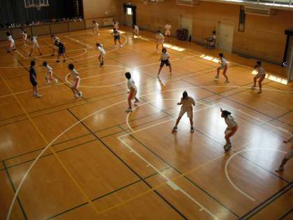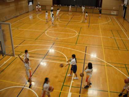 体育館では、女子バスケットボール部が活動をしています。