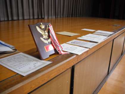 最初に、賞状の伝達がありました。陸上競技部、硬式テニス部、柔道部、吹奏楽部、さらに有志が参加したキックベースボール大会などで優秀な成績を収め、多くの賞状が授与されました。生徒たちの頑張りと成果が全校に紹介され、大きな拍手が送られました。
