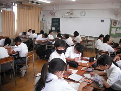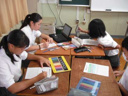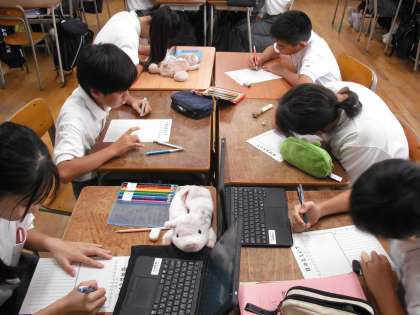 夏休みの思い出をテーマに、一人ひとりが印象に残った出来事を絵と文字で表しました。生徒は、自分だけの夏を振り返りながら作品にしていました。みんな充実した夏を過ごしたようです。