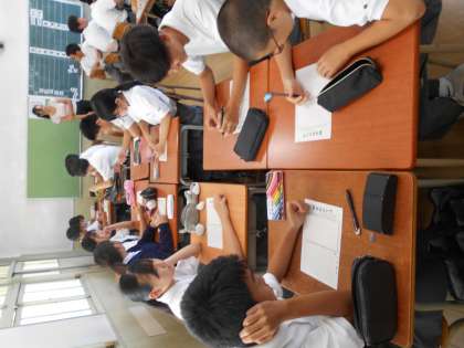 生徒たちは、この夏に体験したことや心に残った風景を思い出しながら、文章とイラストで表現していました。