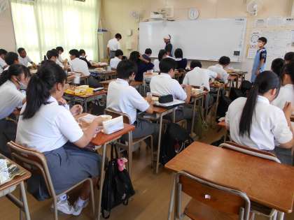 今日の給食☆9月1日 公開日 2025/09/01 更新日 2025/09/01 お知らせ 【鶏肉のバジル焼き ベーコンと野菜のスープ キャベツときゅうりのサラダ コッペパン みかんジャム 牛乳】 いいね(0)