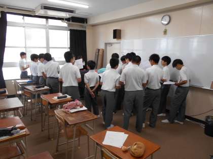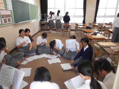 合唱コンクールに向け、合唱練習に取り組みました。写真は、男女に分かれ、各パートの音とりをしているところです。生徒たちが真剣に声を合わせる姿が印象的でした。