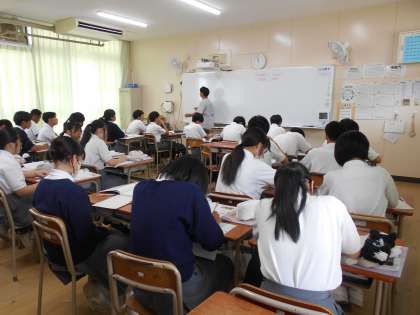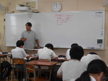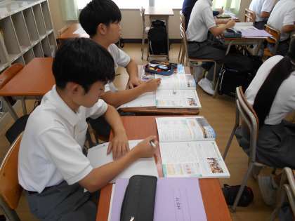 少子高齢化への取り組みをテーマに、社会が抱える課題をどのように解決していくかについて考える授業でした。生徒たちはグループで意見を出し合いながら、自分なりの考えをまとめていきました。