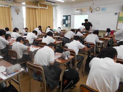 生徒たちは間違えた問題を仲間と教え合いながら一つ一つ確認し、理解を深めようと真剣に取り組んでいました。