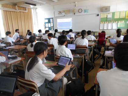 今日の授業☆1年生社会科9月10日 公開日 2025/09/10 更新日 2025/09/10 1年生 タブレット端末を活用し、ゲーム形式で振り返り問題に取り組みました。写真は「気候帯」に関する問題に挑戦している場面です。生徒たちは意欲的にかつ楽しみながら知識を深めていました。 いいね(0)