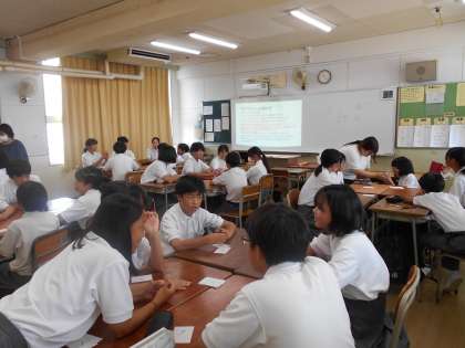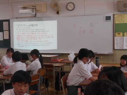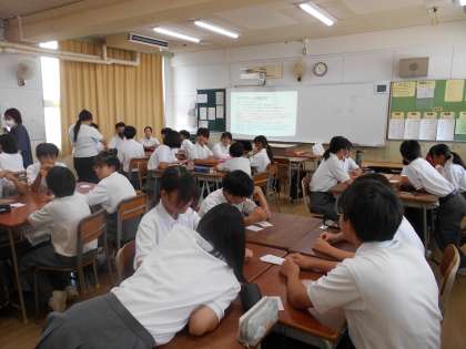 生徒たちは、カタカナ語をカタカナを使わずに説明するというルールのもと、班の仲間と協力しながら楽しく挑戦していました。
