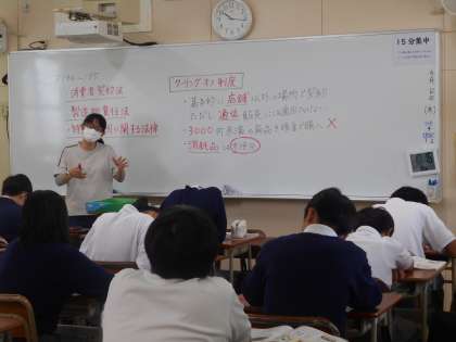 今日の授業☆3年生家庭科9月12日 公開日 2025/09/12 更新日 2025/09/12 3年生 消費者トラブルとその対策について学習しました。 写真は、「クーリングオフ制度」について説明を聞いている場面です。具体的な事例を通して、自分たちの生活と結びつけながら学ぶことで、正しい知識を身につけていきます。 いいね(0)