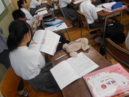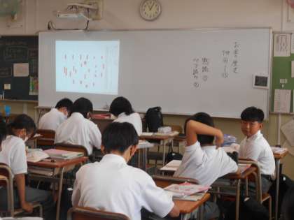 読解力を伸ばすために大切な、「黙読」「音読」「聴読」「視写」「校閲」といった手順の重要性について、担当の先生から説明を受けたあと、ペアで「音読」に取り組んでいる様子です。