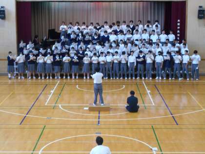 合唱コンクールに向けてpart1☆9月19日 公開日 2025/09/19 更新日 2025/09/19 出来事 合唱コンクールに向けた練習が、いよいよ本格的に始まりました。 体育館では、学年全体での合唱練習に取り組み。大きな歌声が響き渡りました。 また、学級や特別教室に分かれての練習では、それぞれが仲間と声を合わせ、歌い方を工夫しながら一所懸命に取り組みました。 本番に向けて、歌声だけでなく心も一つになっていく生徒たちの姿が楽しみです。 いいね(0)