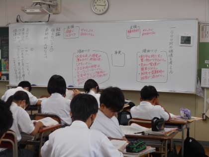 生徒たちは、授業のまとめとして、筆者が伝えたいことを自分なりに整理し、理解を深めまていました。