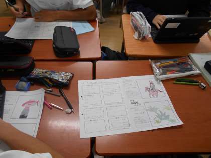 自分の短所や苦手なところ、できないことなどを「妖怪」にたとえて表現する授業を行いました。生徒たちはそれぞれに工夫を凝らし、トンチの効いたユーモラスな絵や画像を制作していました。個性あふれる作品が多数見られ、笑いや驚きに包まれる授業となりました。