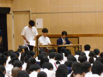 立候補した生徒は、それぞれが学校への思いや願いをしっかりと自分の言葉で伝えてくれました。また、応援演説をした生徒からも、立候補者を支える気持ちがまっすぐに伝わり、とても素晴らしい演説会となりました。