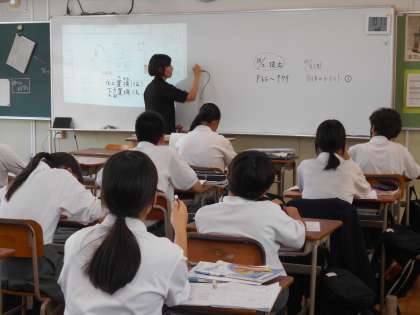 「気体の性質」について学習しました。写真は、期待を発生させたときの集め方について、みんなで意見を出し合いながら考えている様子です。