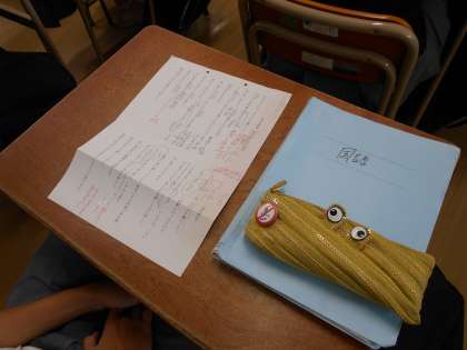 写真は、紀貫之の仮名序を題材に、生徒と一緒に一つひとつの表現を読み解いている様子です。