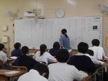 今日の授業☆3年生国語科10月1日 公開日 2025/10/01 更新日 2025/10/01 3年生 万葉集の歌について学習しました。 歌詞に出てくる言葉を一つひとつ取り上げ、生徒たちと感想や意見を交わしながら読み解いていきました。 いいね(0)