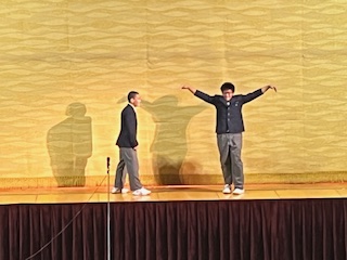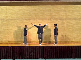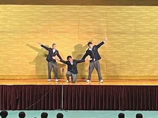 文化発表会☆有志団体10月3日 公開日 2025/10/03 更新日 2025/10/03 お知らせ 柔道部の3年生の皆さんによるコント「合唱コンクールの曲決め」。 会場いっぱいに笑いが広がり、大きな盛り上がりを見せてくれました!観客の心をしっかりつかんでいましたよ! いいね(0)